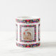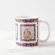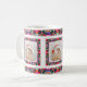 Custom Jolly Noël Motif Photo Photo Tea Coffee Mug. Dans les couleurs traditionnelles de rouge, bleu et vert, avec des touches de rose chaud et d'orange vif ; dans un joli motif multicolore. Pour des boissons chaudes en hiver et un chocolat chaud gai lors de nuits douillettes en hiver. Changez les trois photos en vos propres photos pour célébrer les souvenirs de famille. Achetez comme un cadeau de table de gardien de fête à petit prix pour elle ou ses grands-parents.