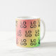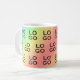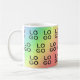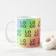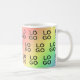 This custom coffee mug features a colorful rainbow gradient background with a sample company of business logo tiled across each side. You can personalize the mug to add your own custom company or business logo. It's perfect for customer or client gifts, employees, corporate events, and Christmas parties.