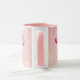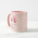 Happy Valentine's Day romantic mug with a personalized message and a cute cat illustration with heart balloons. Pink background design.