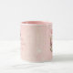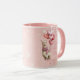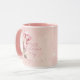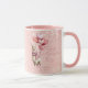 Happy Valentine's Day romantic mug with a personalized message and a llama illustration with heart balloons. Pink background design.