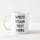 Create your own personalized coffee mug with this clean, minimalist design. Featuring bold black text on a classic white background, this mug is perfect for adding your name, favorite quote, or business logo. A versatile and thoughtful gift for coffee lovers, coworkers, or clients who appreciate simple and modern style.