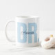 Personalized doctor mug featuring oversized "Dr." typography with an elegant script name overlay creates a bold and modern gift idea for medical professionals. This custom DR mug design showcases large block letters in a soft pastel blue that stand out beautifully against the crisp white background, while a stylish handwritten script name is layered across the center for a refined, personalized touch. The combination of clean sans serif lettering and smooth cursive font creates a balanced, contemporary aesthetic that feels both professional and thoughtful. Ideal for physicians, surgeons, residents, medical school PhD graduates, and healthcare providers, this customized doctor coffee mug makes a meaningful appreciation gift for graduation, white coat ceremonies, residency match celebrations, birthdays, or holiday gifting. The minimalist color palette and strong typographic layout ensure the design remains timeless and versatile for daily use at home, in the clinic, or at the office. This personalized doctor gift mug delivers a sleek, modern look while celebrating medical achievement with style and confidence.
