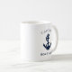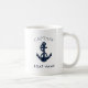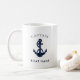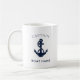 The nautical anchor coffee mug design not only adds a timeless aesthetic but also complements any boating enthusiast's collection. Featuring the captain or boat's name, and a navy blue anchor and rope, personalize to create a unique gear for your boat. Makes a great giveaway for everyone.
