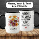 Honor the incredible woman born in November with this elegant custom mug featuring her birth month flowers—Chrysanthemum & Carnation. One side displays her name beneath a timeless floral illustration, while the other side reads: “Making the world a better place since [year].”