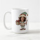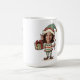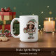 Perfect for the silly season, this personalized mug features a festive illustration of a cute Christmas elf holding a candy cane and a gift. The best part? You can upload any face—your child, friend, family member, or even a pet—to complete the elf's look, making it a truly unique and hilarious holiday accessory.