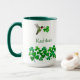 Cute custom St. Patrick's Day mug featuring a hand-painted ruby-throated hummingbird carrying a shamrock.