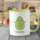 Une tasse amusante avec une jolie illustration d'avocat dans le style de dessin animé et un texte personnalisable ci-dessous : parfait comme cadeau pour un ami ou pour votre café au travail!