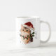 An adorable cat wearing a Christmas hat, with snowflakes and custom name mug for cat lovers, cat mom and cat owners during Christmas season.