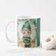 This whimsical Christmas mug features an adorable teal-clad elf surrounded by shimmering golden gifts. The playful and cozy design brings a magical touch to your holiday mornings. Perfect for kids, families, or anyone who loves enchanting Christmas art. Personalize it with a name or message for a one-of-a-kind gift!