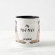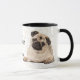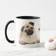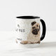 Cette mignonne tasse présente un petit chien carlin qui a l'air adorable de chaque côté. Entre les images est un texte noir qui dit "Mon CARLIN MUG", avec votre nom ou monogramme en bas. Tout est placé sur un arrière - plan blanc parsemé de morceaux de confettis dorés. Le texte se trouve dans un champ personnalisable, de sorte que vous pouvez le modifier si vous le souhaitez.