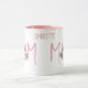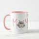 Cute Grey Cat's Mother Named Blush Pink Mothers Day Mug. A sweet and modern Blush Pink handled mug made just for the cat's Mom and personalized with her name, This charming “MOM” design features a playful cat illustration with the cat face forming the “O" in Mom. A thoughtful, one-of-a-kind gif with soft grey and pink accents and a clean minimalist style make it perfect for your favorite cat mother.