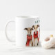 Cute Greyhounds and Whippets in Winter Scarves Coffee Mug avec une douce illustration de 5 adorables petits, portant des foulards verts et rouges. L'un est un peu excentrique ! : -) Si vous avez besoin d'aide pour la conception ou les produits correspondants, veuillez nous contacter à l'adresse bkthompsondesigns@gmail.com.