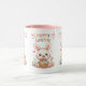 Celebrate the joy of Easter with this adorable Cute Hoppy Easter Bunny Mug. Featuring a charming kawaii-style white bunny holding a basket of colorful eggs, surrounded by flowers, butterflies, and pastel accents, with vibrant "Hoppy Easter!" text in rainbow colors. The pink interior rim adds a sweet touch to this whimsical design, perfect for springtime sipping or gifting.