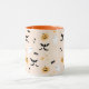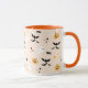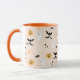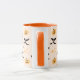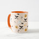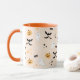 Cute tasse de café avec fantômes d'Halloween fantaisistes, citrouilles, toiles d'araignée et chauves-souris sur fond d'orange clair.