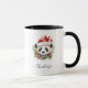 Joli Panda Bear Père Noël Joyeux mug de Noël. Ours de panda de style Kawaii noir, blanc et rouge avec chapeau de Père Noël et botaniques de Noël. Texte personnalisé.