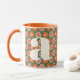 Mug Cute Retro Flowers Green Pink Monogram Custom
