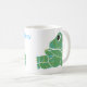 Créez un cadeau non-froggettable lorsque vous ajoutez un nom à cette tasse de café. Il présente une jolie illustration de grenouille de style rétro. La grenouille caricaturale verte a des taches bleues et jaunes. Votre nom ou autre texte apparaît en lettres bleu vif. Le graphique de grenouille apparaît de part et d'autre de la tasse.