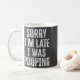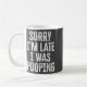 Cute Saying Pooping I m I Late Sorry | Mug .This product reflects a modern visual tone.This product displays a subtle modern character.This product features a clean and modern look.A balanced and modern design concept.The artwork reflects a simple and timeless style.