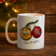 A cute sheep on a Christmas mug. Use "Personalize this template" to change the "BAA HUMBUG!" text and create a unique, customized gift; text changes are reflected on both sides. Featuring a cartoon of two Xmas decorations on a Christmas tree branch; one gold and shiny with a baaing sheep, the other red and sparkling with a humbug sweet, to make the phrase "baa humbug" (a play on bah humbug!) in pictures.