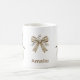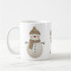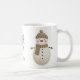 Cute Snowman Bow Drawing Name Christmas Coffee Mug. Cozy, boho-inspired Christmas mug featuring cute drawing of a snowmen and a festive Christmas bow. Soft earthy tones such as terracotta, cream, and green. The overall aesthetic exudes a warm, rustic, and modern Bohemian feel, perfect for a stylish yet festive holiday look.