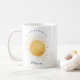 Embrace the warmth and love of motherhood with this delightful "You Are My Sunshine" mug. Featuring a charming watercolor illustration of a golden sun with closed eyes and delicate eyelashes. It can be paired with the heartfelt "as-is" text "Mom" or any name you love and admire. This design is a beautiful tribute to the indispensable role a loved one plays in our lives, radiating positivity and affection. Make every moment special with this radiant keepsake of love.