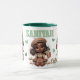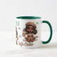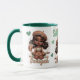 Cette tasse élégante présente une adorable jeune fille noire à la peau marron caramel, aux lèvres pleines de brillance et aux grands yeux expressifs. Elle est habillée d’une tenue glacée et chic inspirée du café - top d’impression de café, jupe mocha avec pops vert menthe, et veste de variété brune et crème. En rodant un béret incliné et de jolies chaussures, elle pose une pose ludique tout en tenant son 🧋 de café glacé. Parfait pour donner aux filles qui aiment la mode, le café et le flair! ✨ Customisez avec votre nom et votre texte !