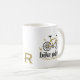 Monogramme vélo tasse à café. Nom et Monogramme en face de la poignée.