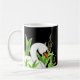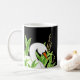 Cygne muet blanc parmi la végétation feuillue contre un arrière - plan noir