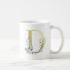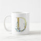 Lettre D, initiale en or avec une tasse initiale en aquarelle bleue. © Julie McIver