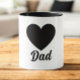 Show Dad some love with this classic "Dad" black heart coffee mug. Featuring a bold black heart and elegant script, this mug is a perfect gift for birthdays, Father's Day, or just to say "thanks" for everything he does.