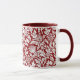 Tasse de café dans un motif de damassé de William Morris de cru des fleurs et du feuille de chardon, dans le blanc, sur un arrière - plan rouge chinois foncé, numériquement augmenté et coloré