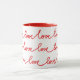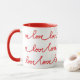Rouge et blanc Moderne Valentin sur le thème Typographie tasse à café avec le texte rouge "amour" contre un arrière - plan blanc,