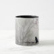 Crow sur une soupe de pois brumeux perché sur une branche semble surréaliste et serein, parfait pour une tasse de chocolat chaud.