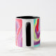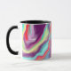 Tasse à café violette et bleue colorée avec un motif art numérique en marbre vermillon.