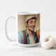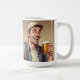Cette tasse abrite un homme heureux qui boit de la bière. Le texte peut être ajouté.
