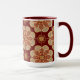 Cette tasse décorative est ornée d'une médaille d'or motif sur le vin. L'intérieur et la poignée de la tasse sont marron. Ce motif provient d'une conception de tuiles originale. Les médaillons et les couleurs riches lui confèrent une atmosphère bohème. Les couleurs comprennent ocher, et pêche, sur un arrière - plan de vin. Utilisez-le sur votre drap de cuisine, salle de bain ou cheminée. Il est parfait pour votre chalet ou ferme de campagne. Cette conception est issue du fabricant de tuiles de l'Oregon Fay Jones Day.