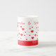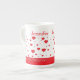 Les coeurs flottent au-dessus d'une barre rouge avec le texte "Joyeux 2e anniversaire". Juste au-dessus du coeur, vous trouverez les noms du couple qui célèbre. Bien que le 2ème anniversaire soit traditionnellement l'anniversaire du "coton", le point de vue le plus moderne est qu'il s'agit de l'anniversaire de la "chine", faisant de cette tasse de porcelaine osseuse une excellente idée cadeau pour cette occasion propice.
