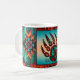 C'est un "One of a Kind"Tribal Bear Paw Coffee Mug! Elle comprend une patte d'ours tribale autochtone d'Amérique Tribale sur un Arrière - plan Turquoise et Orange...Entouré d'une frontière sud-ouest en Turquoise, Orange & Noir!