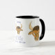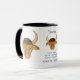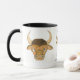 Une tasse blanche avec lèvre et poignée noires et un taureau, avant et arrière, d'une aquarelle de Judy Adamson. Entre les deux taureaux est une image plus petite d'un taureau, les dates et les quatre traits les plus positifs d'un Taurean. Des cartes de voeux assorties, des cadeaux et des t-shirts sont également disponibles.