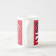 jolie porcelaine, bonne dimension effet brillant bien dans l'ensemble. Le motif et les couleurs sont réussis.Je trouve néanmoins dommage de ne pas occuper tout l'espace avc le motif car la partie rouge au dos de la tasse est trop présente et pas intéressante visuellement.