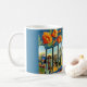Une carte postale vintage et magnifique saluée de Californie. Si vous préférez un arrière - plan de couleur différent sur la tasse, il est facile de le changer!