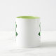 Un champignon de dessin animé avec un haut vert en forme de casquette leprechaun. Le casquette a des taches shamrocks. La tige blanche a un visage souriant.