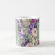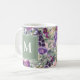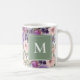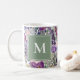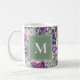 Feuilles mignons, girly et féminins rose vif et violet d'aquarelle fleurie et vert sauge sur mug monogramme. Personnalisez avec votre initiale.
