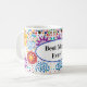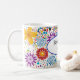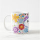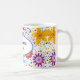 Cette tasse de café en céramique est présentée avec un design d'impression florale aux couleurs vives avec un message pour Maman. Customisez cet objet ou achetez tel quel. Image stock