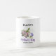 Cette tasse à café personnalisée présente un design floral accompagné du texte "Bonne fête des mères". Ajoutez le nom du destinataire au modèle personnalisé.