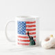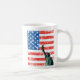 Une tasse à café avec le drapeau américain et la Statue de la Liberté, célébrant la liberté !