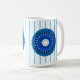 Cette tasse ensoleillée (ou tasse) présente de belles mandalas bleues sur fond de rayures turquoise et blanche. Si vous êtes dans les mandalas, la géométrie, ou juste profiter de designs intéressants, cette tasse pourrait être une bonne façon de chug votre java du matin ou de siroter votre thé du soir. Différents autres éléments de décoration de cuisine sont disponibles dans un style mandala bleu.
