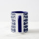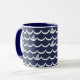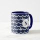 Une mer de ailerons de requin nageant sur un arrière - plan bleu marine avec monogramme.