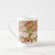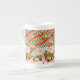 jolie porcelaine, bonne dimension effet brillant bien dans l'ensemble. Le motif et les couleurs sont réussis.Je trouve néanmoins dommage de ne pas occuper tout l'espace avc le motif car la partie rouge au dos de la tasse est trop présente et pas intéressante visuellement.