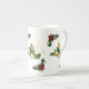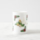 jolie porcelaine, bonne dimension effet brillant bien dans l'ensemble. Le motif et les couleurs sont réussis.Je trouve néanmoins dommage de ne pas occuper tout l'espace avc le motif car la partie rouge au dos de la tasse est trop présente et pas intéressante visuellement.